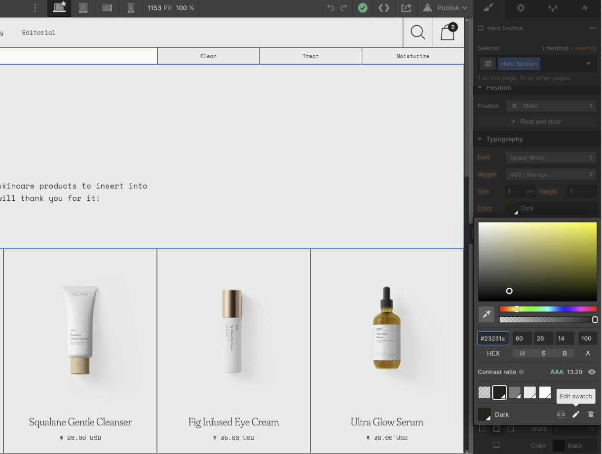 Essence Skincare Ecommerce Webflow Template uses typography formatted with search engines and accessibility in mind.